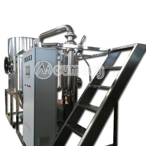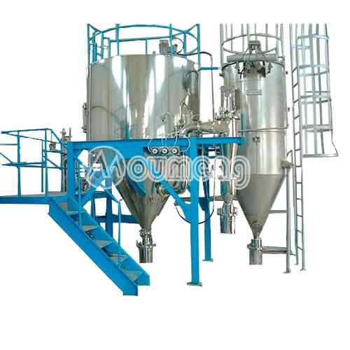 有機(jī)溶劑噴霧干燥機(jī)是系統(tǒng)組成一個(gè)封閉的循環(huán)回路,載熱體可以循環(huán)使用也叫閉式循環(huán)噴霧干燥機(jī)。對(duì)于揮發(fā)物是有機(jī)化學(xué)溶劑、有毒或逸出后能對(duì)人身、環(huán)境造成危害物料的干燥,料液中含有的有機(jī)溶劑或產(chǎn) 品是易氧化、易燃、易爆的物料,一般情況下,需用這種流程的物料都是不能接觸氧氣的,所以載熱體大多使用惰性氣體(如氮?dú)狻⒍趸嫉?/span>);此種方式又稱(chēng)惰 性氣體干燥。從干燥器排出的尾氣,經(jīng)過(guò)氣固分離后還要經(jīng)過(guò)冷凝器回收溶劑或去除濕分,再經(jīng)加熱器升溫后進(jìn)入干燥器進(jìn)行循環(huán)使用。通過(guò)載熱體和閉式循環(huán)方 式,我們可以有效的避免物質(zhì)干燥遭遇高溫危險(xiǎn)、防止噴霧干燥過(guò)程中與氧氣接觸,粉塵90%以上回收等。